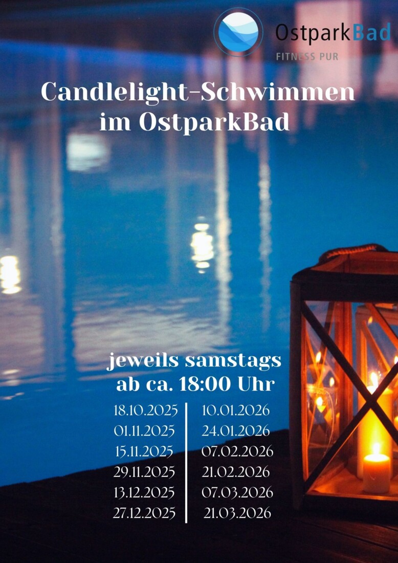 Tauchen Sie ein in eine magische Atmosphäre und erleben Sie das einzigartige Candlelight-Schwimmen in unserem Hallenbad! Ab dem 18. Oktober laden wir Sie regelmäßig zu einem unvergesslichen Abend voller Entspannung und Romantik ein.